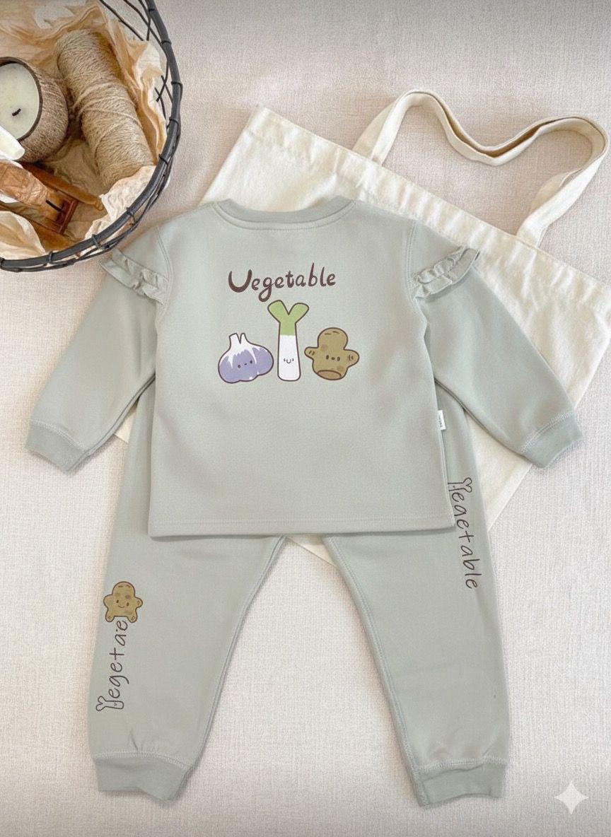 Dress your little one in cozy cuteness with this “Vegetable Friends” two-piece set!